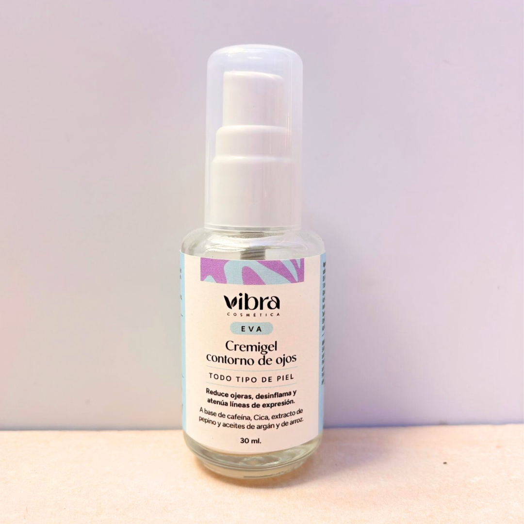 EVA es un cremigel liviano que hidrata profundamente, mejora la elasticidad y reduce visiblemente signos de fatiga como ojeras, bolsas y líneas de expresión. Su textura fresca y de rápida absorción lo convierte en el aliado perfecto para revitalizar tu mirada cada día, incluso bajo el maquillaje. Aroma cítrico suave.
