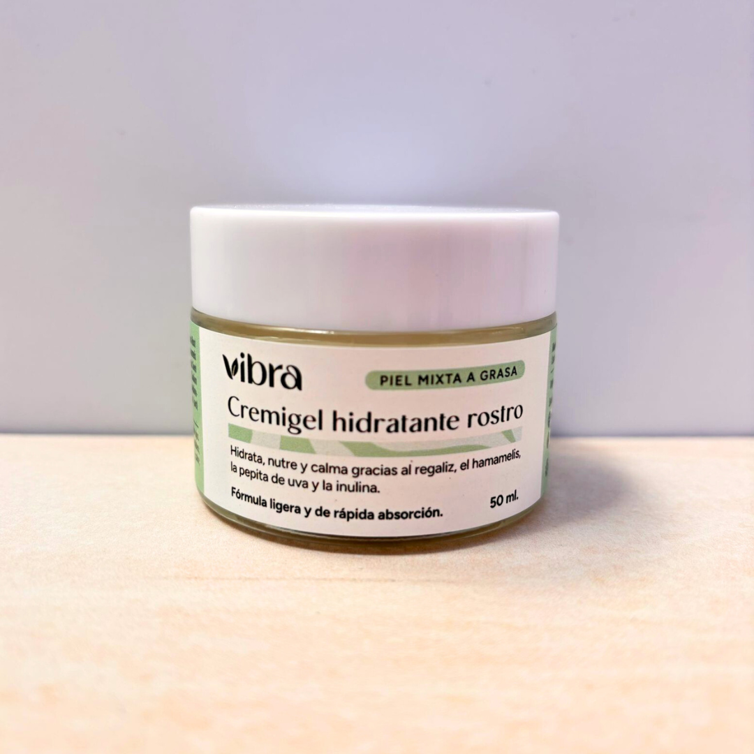 Equilibra tu piel con nuestra Cremigel Hidratante de Uva, diseñada para hidratar profundamente sin dejar sensación grasa. Su textura ligera se absorbe al instante, aportando frescura y nutrición para una piel saludable, mate y luminosa. Ideal para pieles mixtas a grasas que buscan confort y ligereza en su rutina diaria.